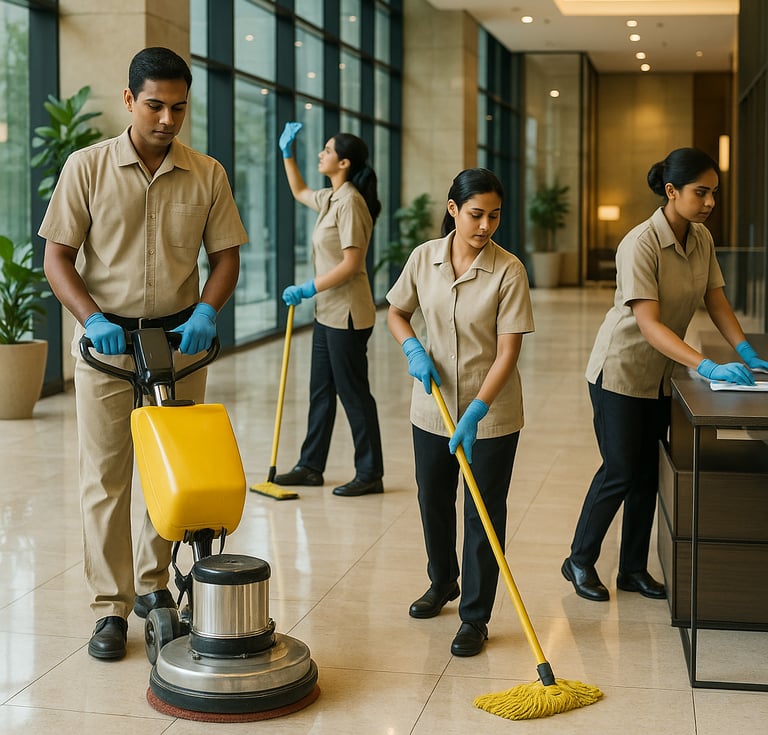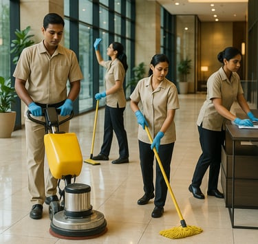 We provide trained, uniformed, and background-verified housekeeping staff who manage daily cleaning operations efficiently across all mall zones — from entrances to parking areas.
